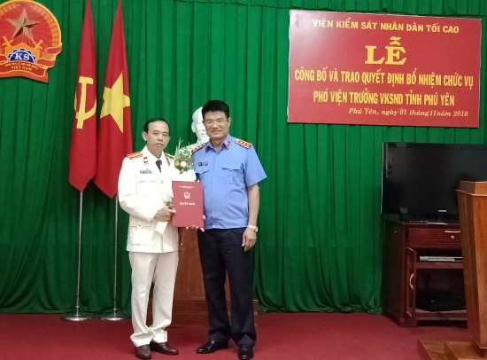 Trước đó, chiều ngày 1/11, đồng chí Nguyễn Huy Tiến, Ủy viên Ban cán sự đảng, Phó Viện trưởng Viện Kiểm sát Nhân dân Tối cao đã trao Quyết định số 91/QĐ-VKSTC ngày 16/10/2018 của Viện trưởng Viện Kiểm sát Nhân dân Tối cao bổ nhiệm đồng chí Huỳnh Ngọc Thanh, Trưởng phòng Thực hành quyền công tố, kiểm sát điều tra, kiểm sát xét xử sơ thẩm án an ninh, ma túy và trật tự xã hội Viện Kiểm sát Nhân dân tỉnh Phú Yên giữ chức vụ Phó Viện trưởng Viện Kiểm sát Nhân dân tỉnh Phú Yên, nhiệm kỳ 5 năm, kể từ ngày 1/11/2018.
