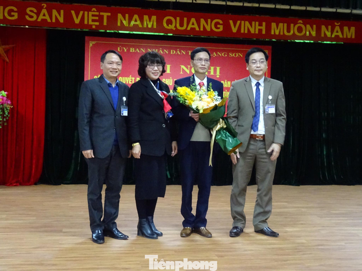 Ông Nguyễn Văn Lực (trái) nhận quyết định giữ chức vụ Phó giám đốc sở Tài chính Lạng Sơn .Ảnh: Duy Chiến