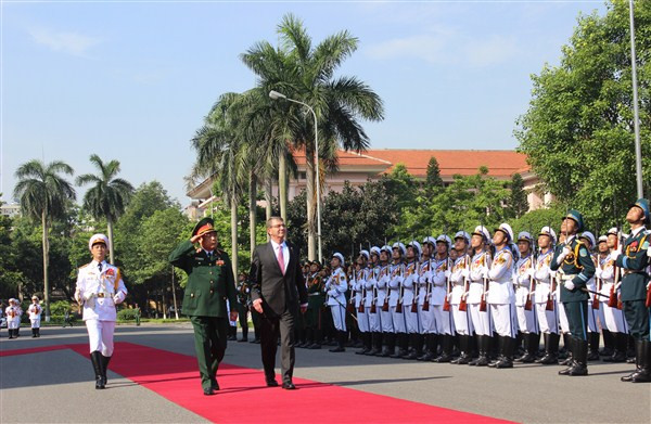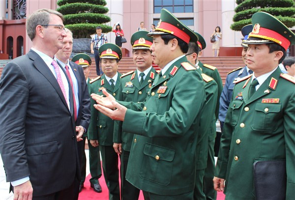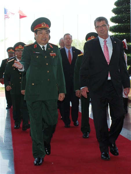 Bộ trưởng Phùng Quang Thanh đón người đồng cấp Ashton Carter đến thăm Việt Nam.