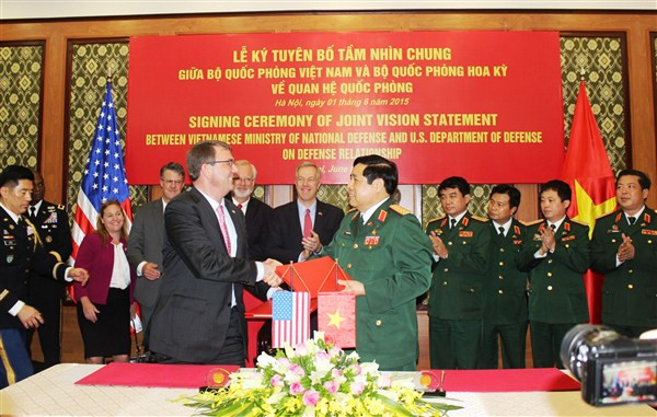 Sau lễ đón, Bộ trưởng Phùng Quang Thanh và người đồng cấp Ashton Carter đã cùng chủ trì buổi hội đàm giữa đoàn quân sự cấp cao hai nước. Kết thúc hội đàm, hai Bộ trưởng đã ký Tuyên bố Tầm nhìn chung về quan hệ quốc phòng giữa Bộ Quốc phòng Việt Nam và Bộ Quốc phòng Hoa Kỳ.