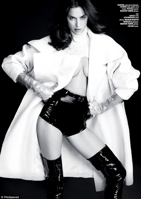 Trên ấn phẩm này, Irina Shayk khoe gần trọn vòng một nóng bỏng trong những thiết kế bằng chất liệu vải da bóng gợi cảm và bí ẩn. Những pha tạo dáng chuyên nghiệp và táo bạo của Irina khiến cho cánh mày râu phải 'nóng mắt' với thân hình khó cưỡng của mình.