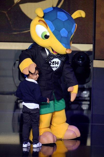 Cậu bé nghịch ngợm với linh vật của World Cup 2014