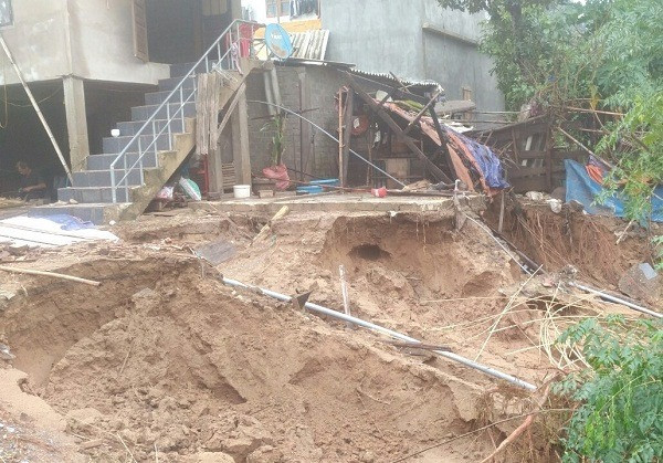 Trong đợt lũ lụt vừa qua, tình trạng sạt lở dọc sông Gianh đoạn qua thôn Đức Phú rất nghiêm trọng. Có nơi sạt lở đã liếm sát chân cầu thang của nhà dân.