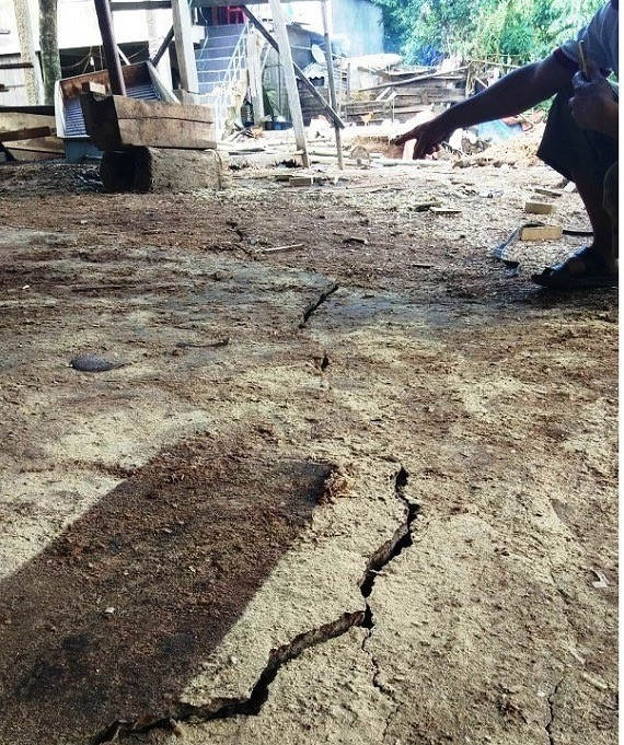 “Sáng ngày 6/9 khi chính quyền địa phương ra kiểm tra tình hình sạt lở thì chưa thấy hiện tượng gì cả. Nhưng vào buổi trưa, khi tôi ngủ dậy thì thấy vết nứt dài thế này rồi, kéo dài qua nền nhà tôi và có thể thò được cả tay vào khe nút đó. Sau đó tôi gọi mọi người ra xem và báo với chính quyền địa phương", ông Võ Xuân Trường, Chủ tịch UBND xã Đức Hóa nói.