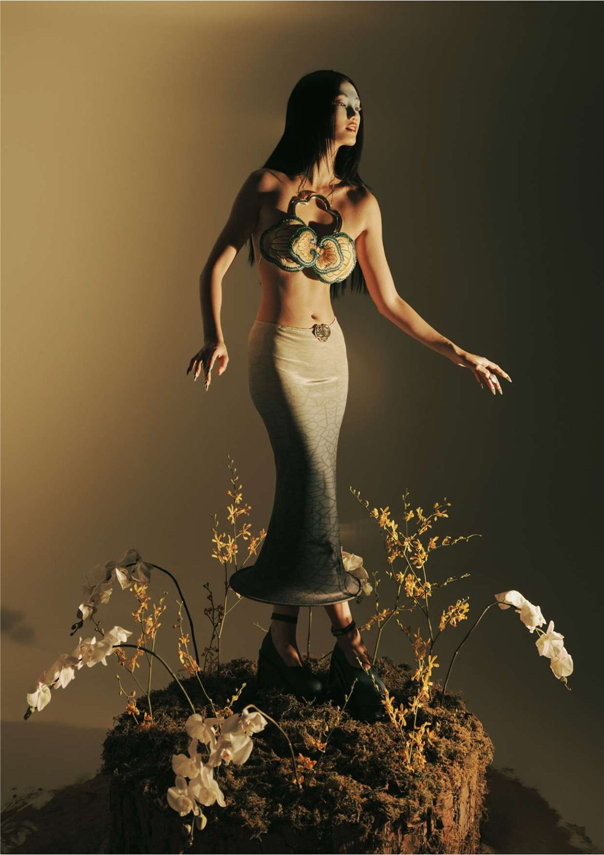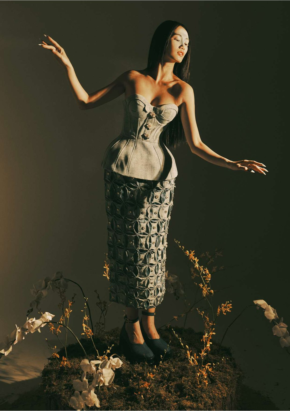Tác giả Hoài Nhu kết hợp thuần thục nhiều yếu tố từ trang phục truyền thống, xu hướng thời trang thịnh hành đương đại cùng kỹ thuật in 3D, đem đến trải nghiệm thị giác vừa lạ vừa quen thú vị, ấn tượng với khán giả.