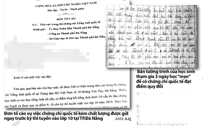 Dư luận đang đặt nhiều nghi vấn về chất lượng một loại chứng chỉ quốc tế do một trung tâm được Bộ GD-ĐT cấp phép tổ chức thi tại Đà Nẵng thời gian gần đây, vì dù thực tế học lực tiếng Anh của nhiều học sinh xếp loại kém nhưng vẫn đạt được chứng chỉ để quy đổi sang điểm 9, 10.