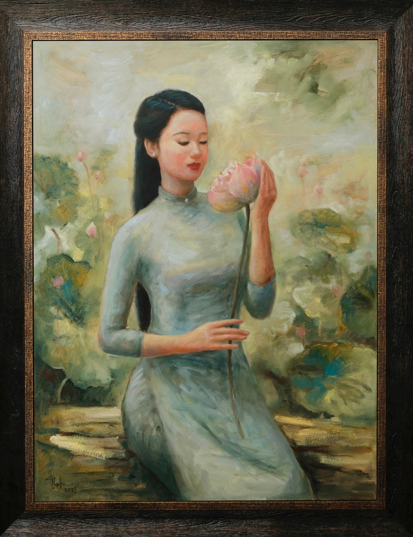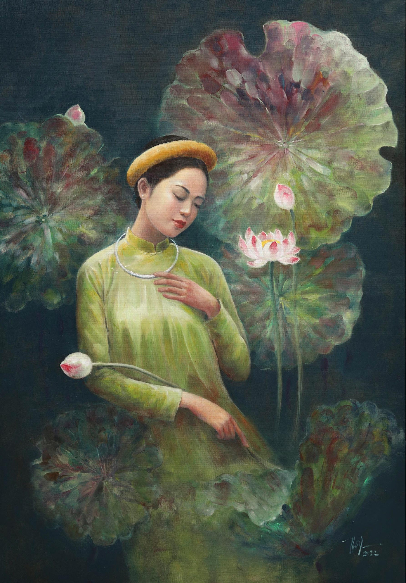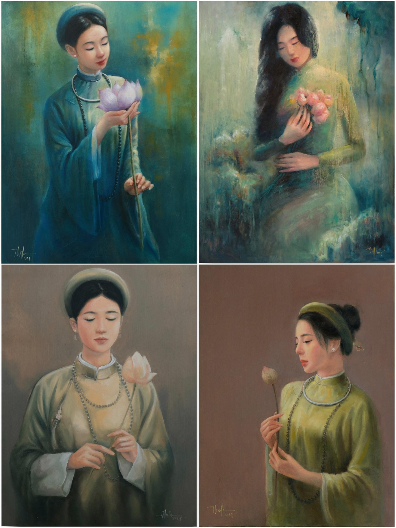 SVO - Mới đây trên mạng xã hội, trong các hội nhóm về mỹ thuật, vẽ tranh xuất hiện một bộ tranh sơn dầu khắc họa chân dung người thiếu nữ Việt Nam bên hoa sen – Quốc hoa của Việt Nam. Được biết tác giả của bộ tranh này là một họa sĩ trẻ quê ở Bắc Giang tên Nguyễn Đức Thành.