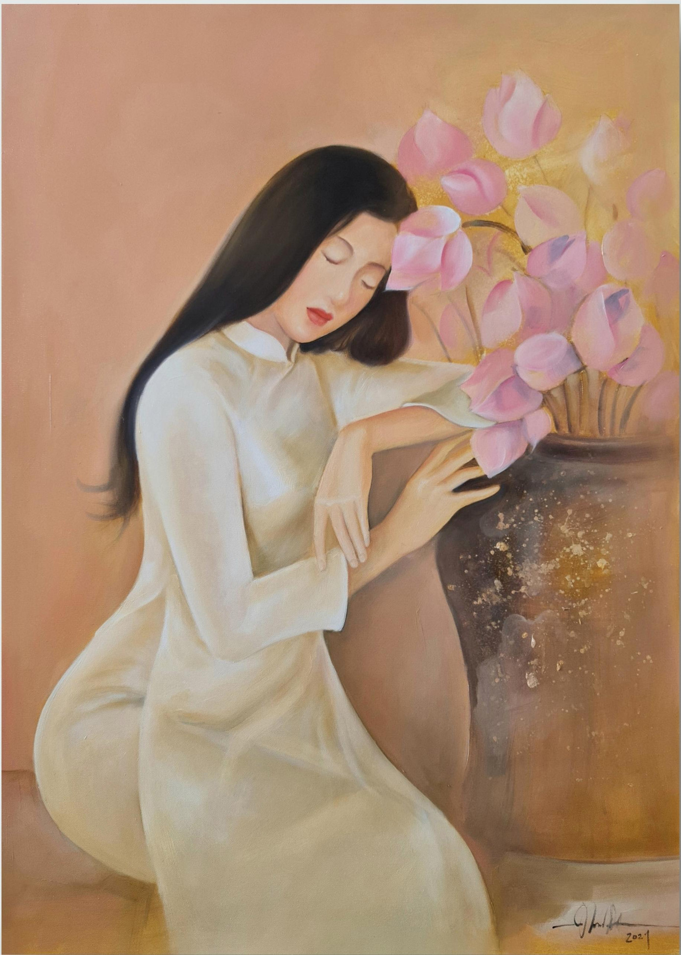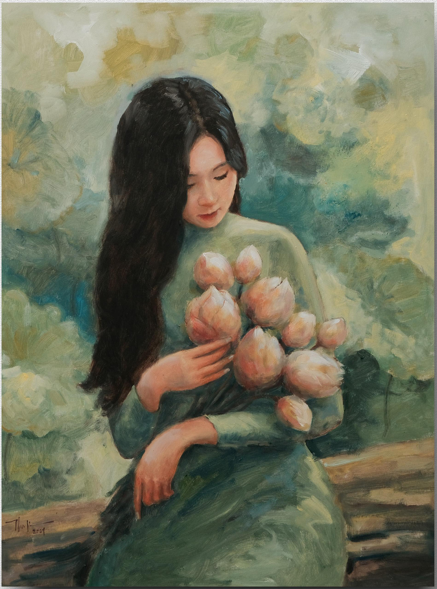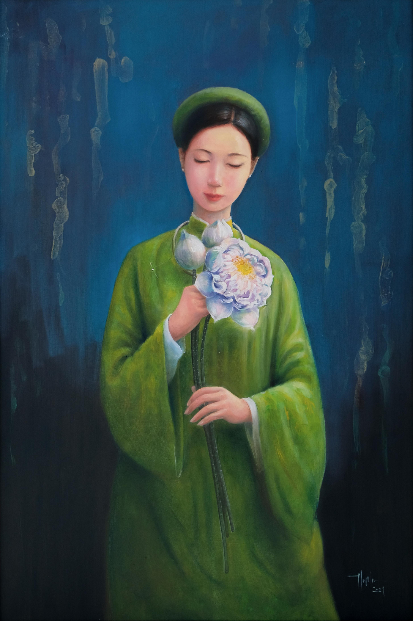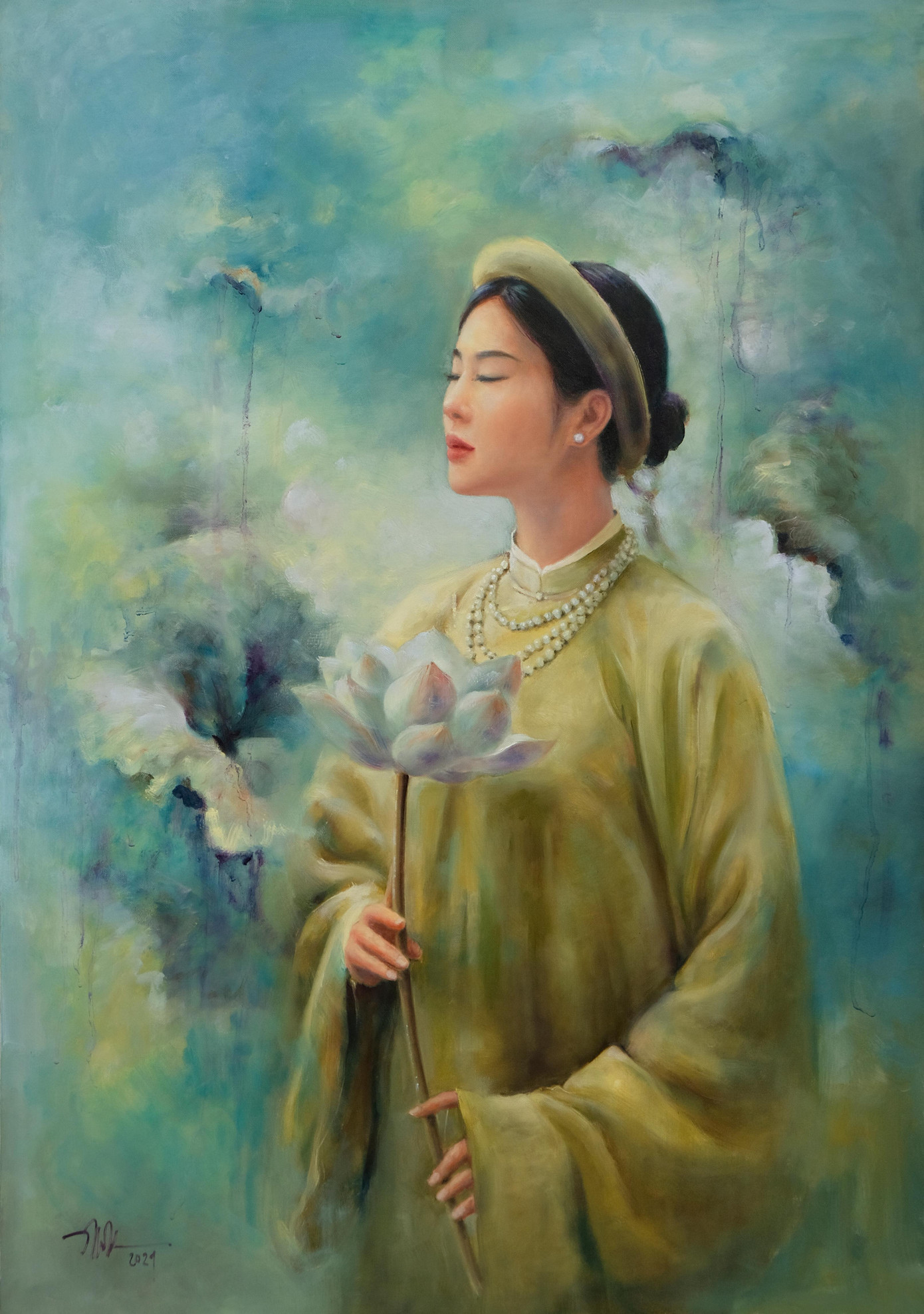 SVO - Mới đây trên mạng xã hội, trong các hội nhóm về mỹ thuật, vẽ tranh xuất hiện một bộ tranh sơn dầu khắc họa chân dung người thiếu nữ Việt Nam bên hoa sen – Quốc hoa của Việt Nam. Được biết tác giả của bộ tranh này là một họa sĩ trẻ quê ở Bắc Giang tên Nguyễn Đức Thành.
