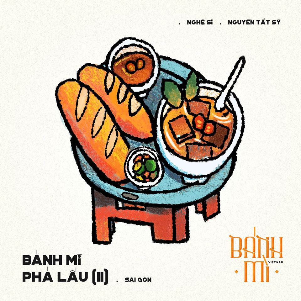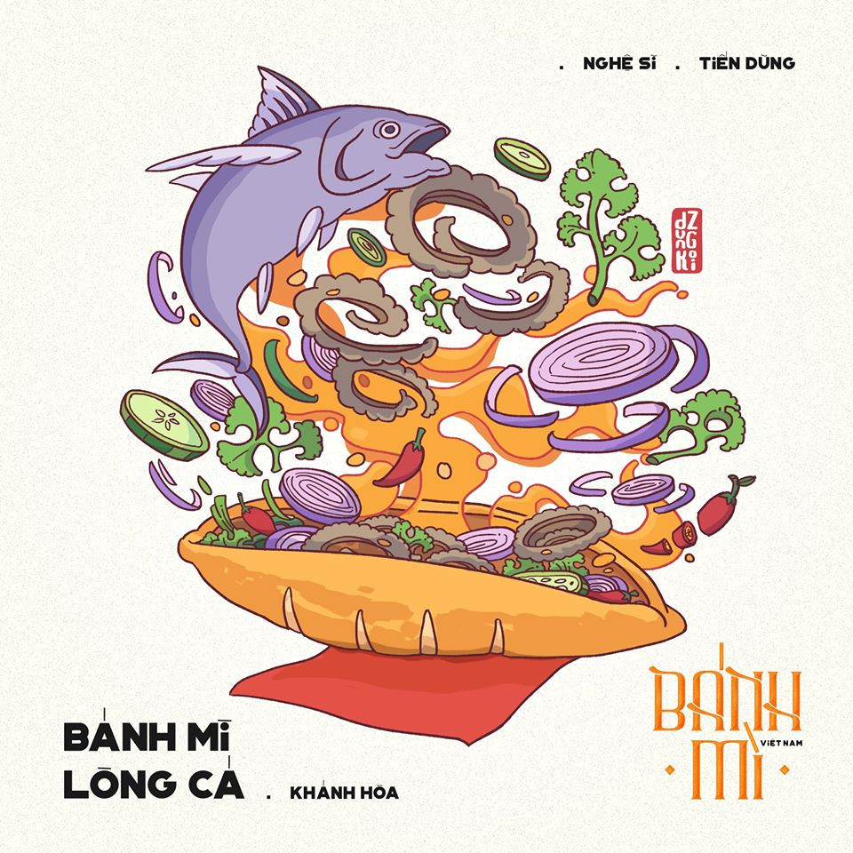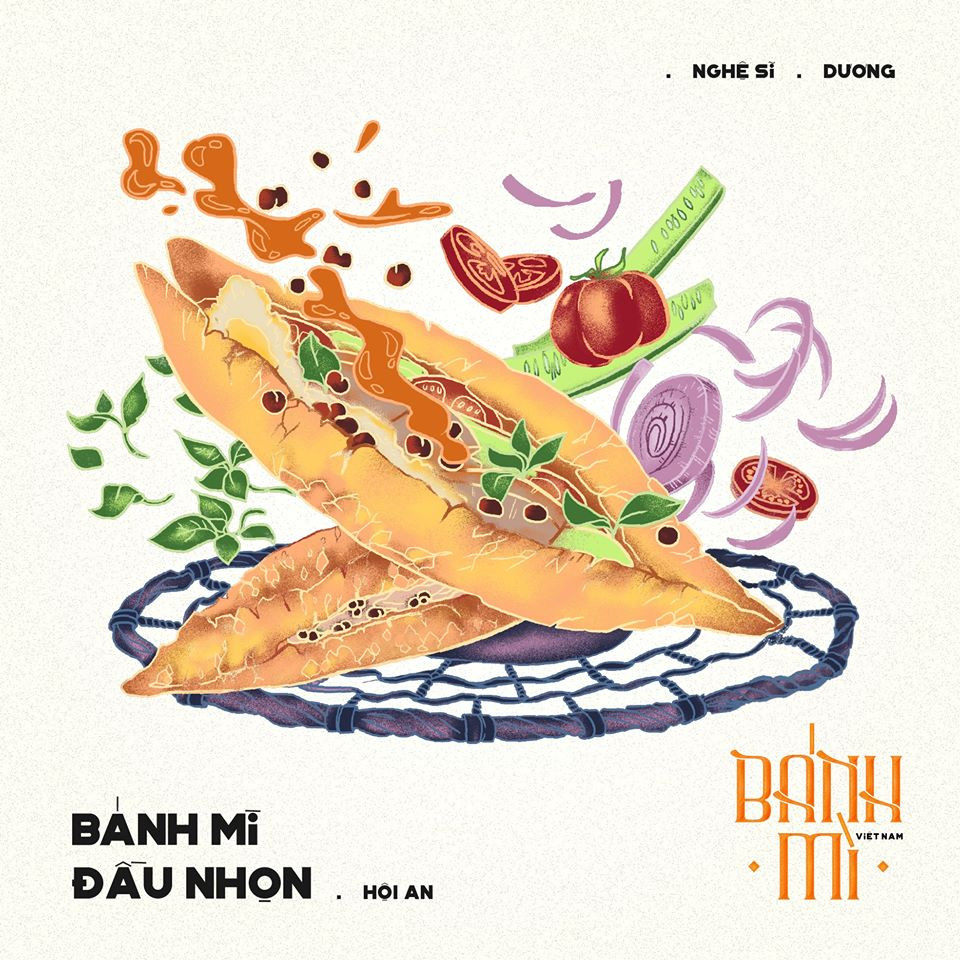 Bộ tranh gồm có những món bánh mì Việt đã quen thuộc như bánh mì cay Hải Phòng, bánh mì chả, bánh mì thịt nướng... đến những món mới lạ như bánh mì bột lọc, bánh mì lòng cá, bánh mì kem... và mới nhất là bánh mì thanh long nhằm giúp "giải cứu" loại trái cây này trong mùa dịch covid-19.