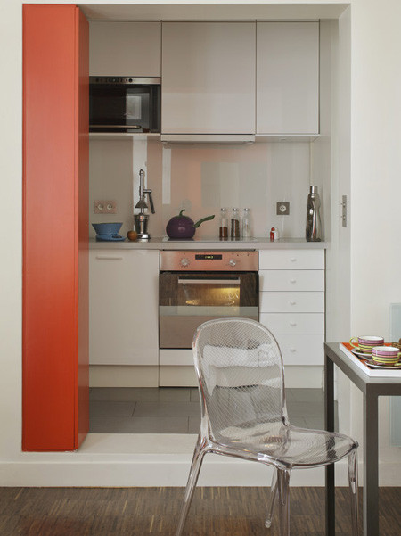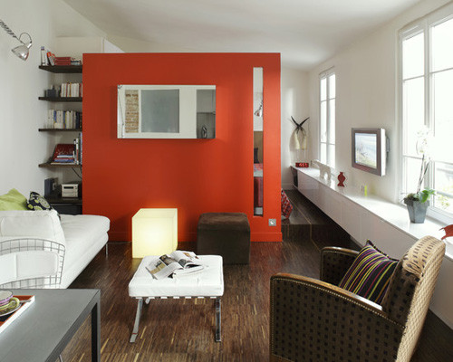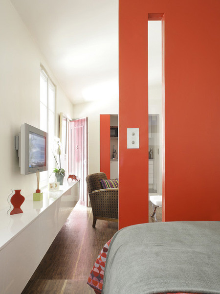 Căn nhà ở Paris (Pháp) có ưu điểm là mặt thoáng rộng nên có thể mở nhiều cửa sổ. Tuy nhiên, diện tích nhà hẹp, trần không cao nên dễ tạo cảm giác nhà càng thêm chật chội nếu kiến trúc sư không xử lý khéo.