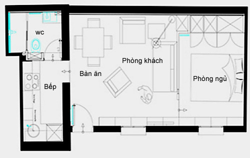 Bố trí nội thất khép kín trong căn nhà 32 m2