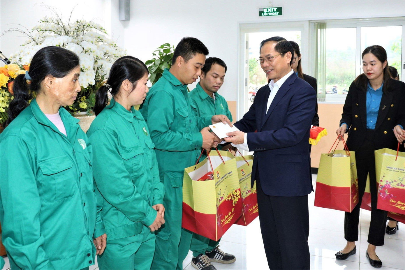 Nhân dịp này, Bộ trưởng Ngoại giao Bùi Thanh Sơn và đoàn công tác đã tặng 100 suất quà Tết cho công nhân lao động của các công ty trong khu công nghiệp.