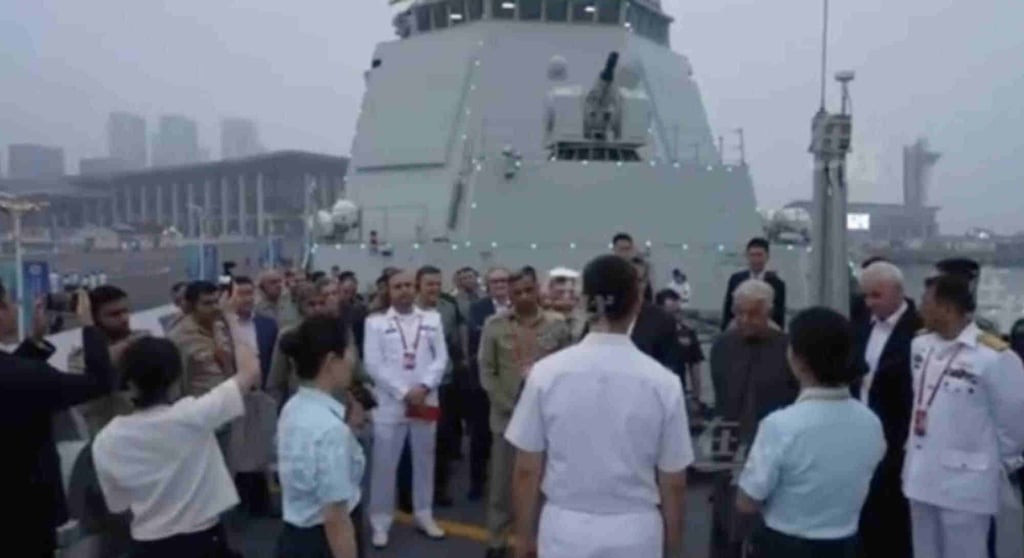 | Các bộ trưởng quốc phòng thăm tàu chiến Trung Quốc. (Ảnh: CCTV) |