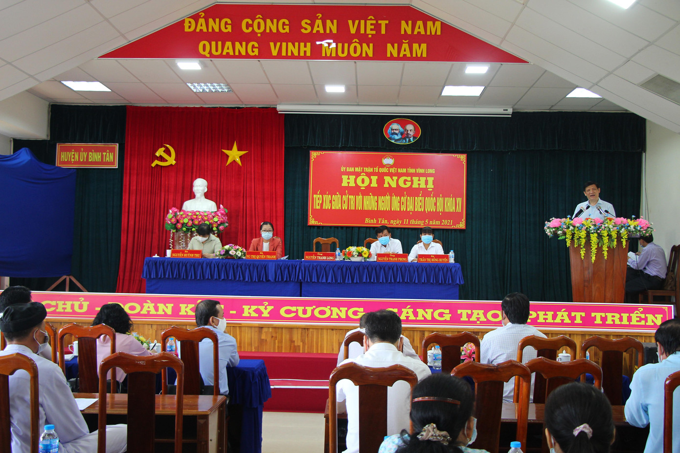 Sáng ngày 11/5, Ủy ban MTTQ Việt Nam tỉnh Vĩnh Long tổ chức hội nghị tiếp xúc cử tri với những người ứng cử đại biểu Quốc hội khóa XV, nhiệm kỳ 2021 – 2026, tại huyện Bình Tân.