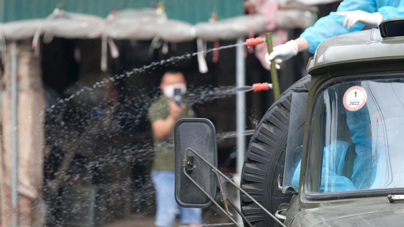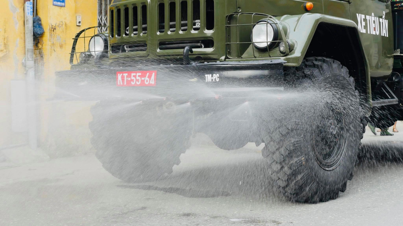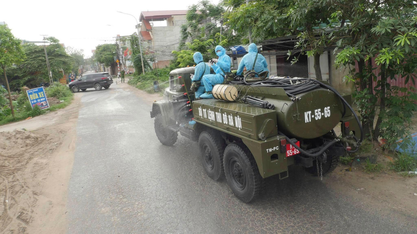 Đúng 7 giờ 30 phút, lực lượng phòng hoá thuộc Bộ Tư lệnh Thủ đô bắt đầu khẩn trương thực hiện nhiệm vụ. Đảm bảo đúng phương án, nhanh chóng tiêu độc, tẩy trùng triệt để nhằm ngăn chặn nguy cơ virus SARS - CoV - 2 phát tán trong môi trường.