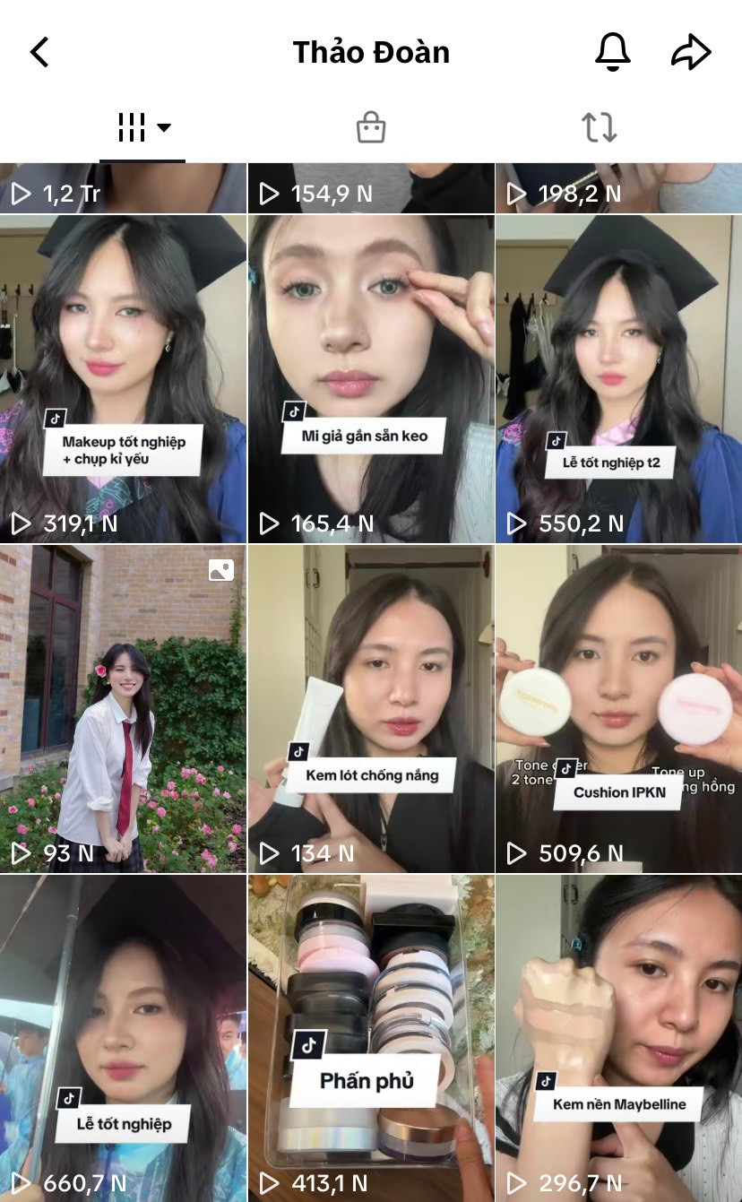Trong các video hướng dẫn makeup, chị đều thực hành ngay để các newbie có thể làm theo và tự tập tại nhà. Với các bạn mới follow kênh, chị cũng có tạo sẵn series “Khoá makeup free” được ghim đầu trang TikTok, gồm những video hướng dẫn chi tiết các bước makeup, dụng cụ trang điểm cơ bản nhất.