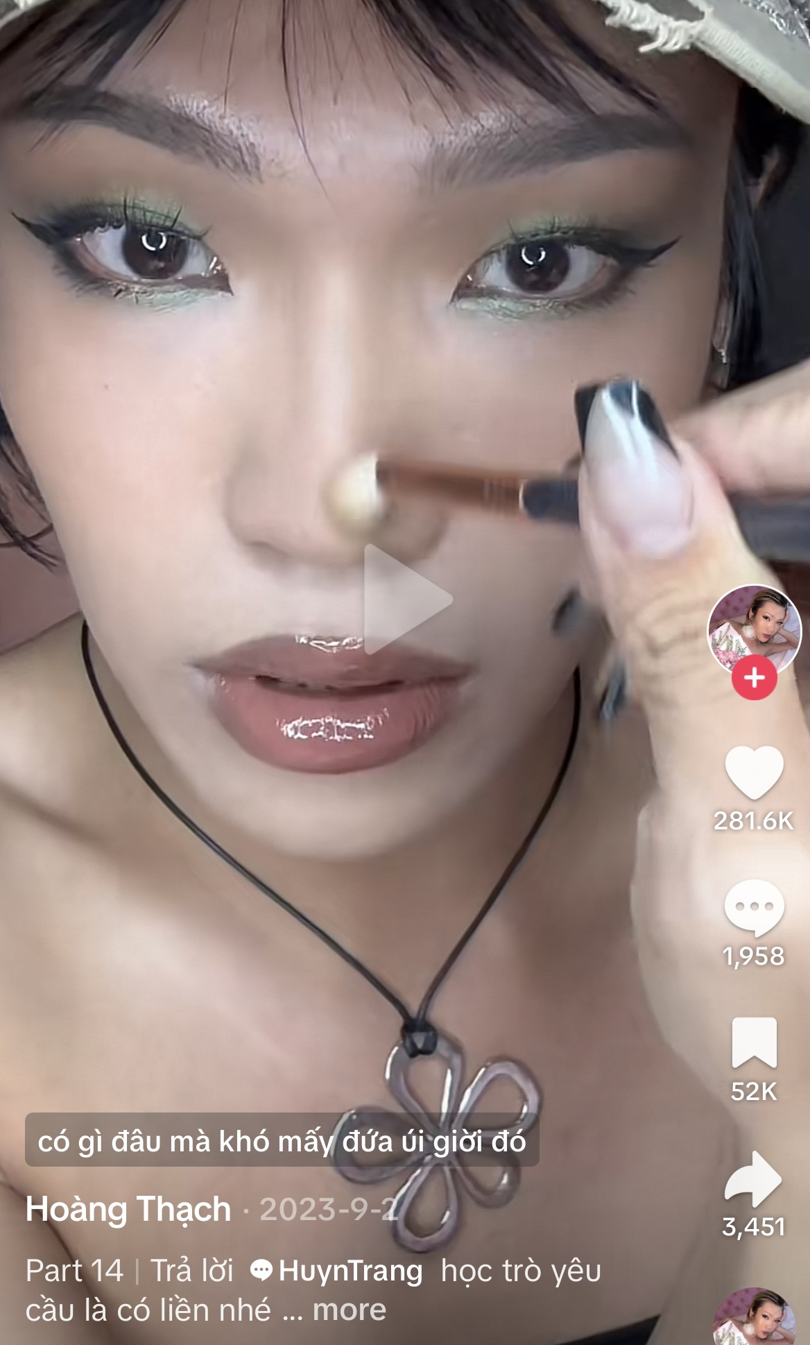 Kênh của cô giáo Hoàng Thạch (tên TikTok @hoangthachhh) đã không còn xa lạ với các bạn mới tập trang điểm vì cách chia sẻ gần gũi và hài hước. Series “Makeup tips nhanh gọn lẹ" của cô được rất nhiều teen "thả tim" nhờ các video chia sẻ cách đánh nền, thoa son, kẻ mắt kiểu "rốp rẻng".
