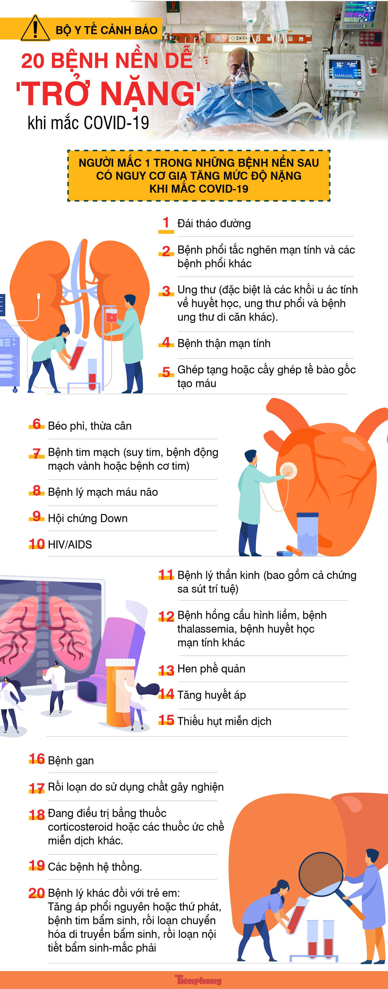 Google News Bộ Y tế cảnh báo 20 bệnh nền dễ 'trở nặng' khi mắc COVID-19
