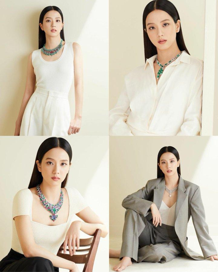 Tuy nhiên, đây vẫn chưa phải những trang sức đắt giá nhất mà Jisoo từng đeo của Cartier. Trong bộ ảnh đầu tiên sau khi chính thức trở thành đại sứ toàn cầu của thương hiệu này, Jisoo xuất hiện với trang phục và make-up tối giản. Nhưng điều đáng chú ý là chiếc vòng cổ đính đá cầu kỳ có giá khoảng 3 triệu USD (hơn 71,6 tỷ đồng).