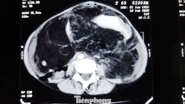 Bệnh nhân mang khối u khủng là bà Nguyễn Thị K. (68 tuổi, trú huyện Cam Lộ, tỉnh Quảng trị). Bà K. nhập viện ở khoa Ngoại nhi - Cấp cứu bụng Bệnh viện Trung ương Huế vì bụng phình to như có thai sắp sinh. Bà K. bị suy kiệt nặng, cân nặng chỉ 40kg, và nôn mửa nhiều, thiếu máu, khó thở; tính mạng bị uy hiếp.