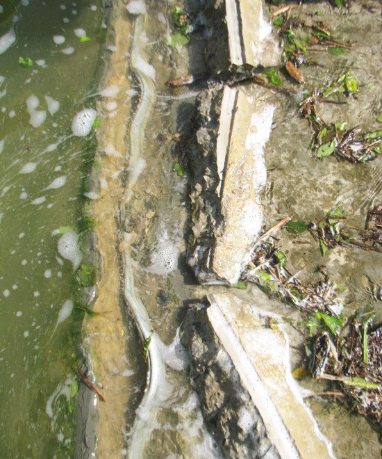 Hàng loạt vị trí ở chân đập có những lỗ bắn nước tua tủa ra ngoài, sau đó được đơn vị quản lý trám lại nhưng nước vẫn còn thấm qua. "Dân chúng tôi lo lắm vì đây là chuyện liên quan đến tính mạng của nhiều người, nếu sự cố xảy ra. Không chỉ những hộ sống dưới chân đập như tôi lo đâu, còn 8.000 hộ khác sống dưới chân núi cũng xôn xao dữ lắm", ông Sáu (65 tuồi) cho biết.