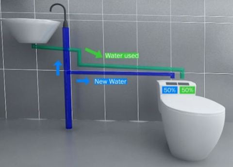 Theo cách này, người sử dụng bồn cầu có thể tận dụng được nước dư thừa từ bồn rửa để xả nước, thay vì sử dụng nước mới. Tất nhiên nếu lâu không dùng bồn rửa tay, chiếc bồn cầu vẫn sẵn sàng xả nước với một cần gạt xả nước từ bình nước thông thường như các bồn cầu khác.