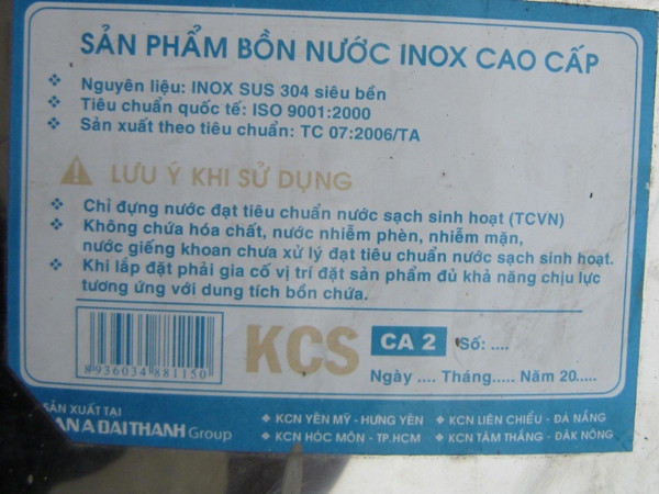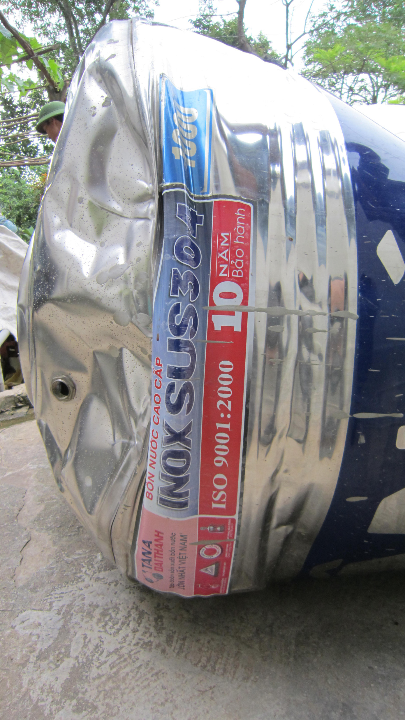Chị Dương Thị Tư (xã Trung Mỹ), đại lý cung cấp bồn chứa nước cho hãng Tân Á Đại Thành, cho biết, tháng 5-2011, anh Lưu Văn Dương mua chiếc bồn này từ cửa hàng của chị, kèm theo chân bồn (bồn được bảo hành 10 năm).