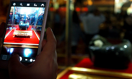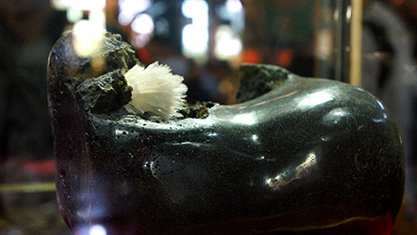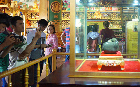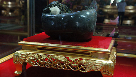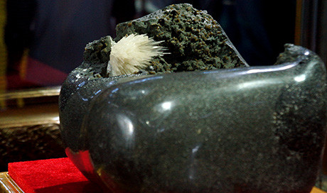 Viên đá đen được trưng bày trong lồng kính trong suốt, khôngtiếp xúc với không khí, ánh sáng trực tiếp. Du khách dễ dàng chiêm ngưỡng bônghoa có một không hai này.