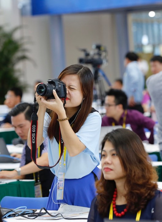 Bận rộn, nhưng các nữ phóng viên không quên việc ghi lại những thời khắc tác nghiệp tại APEC