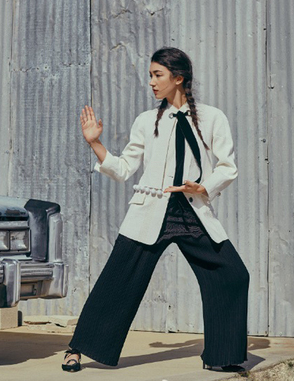 Lưu Thừa Vũ diện phong cách gợi cảm khi làm mẫu.