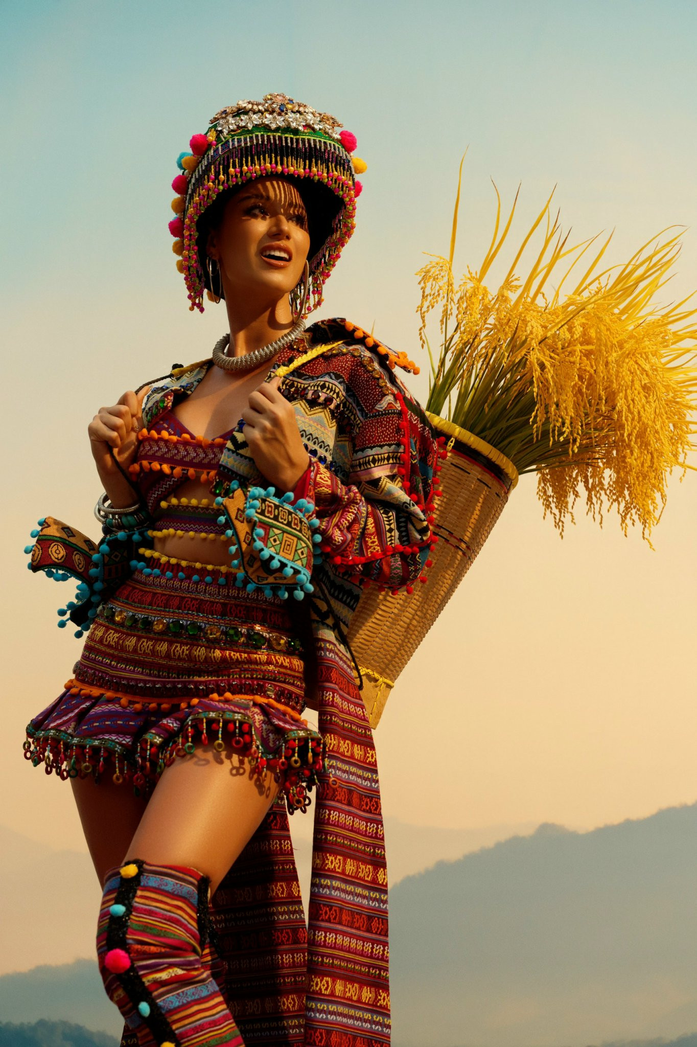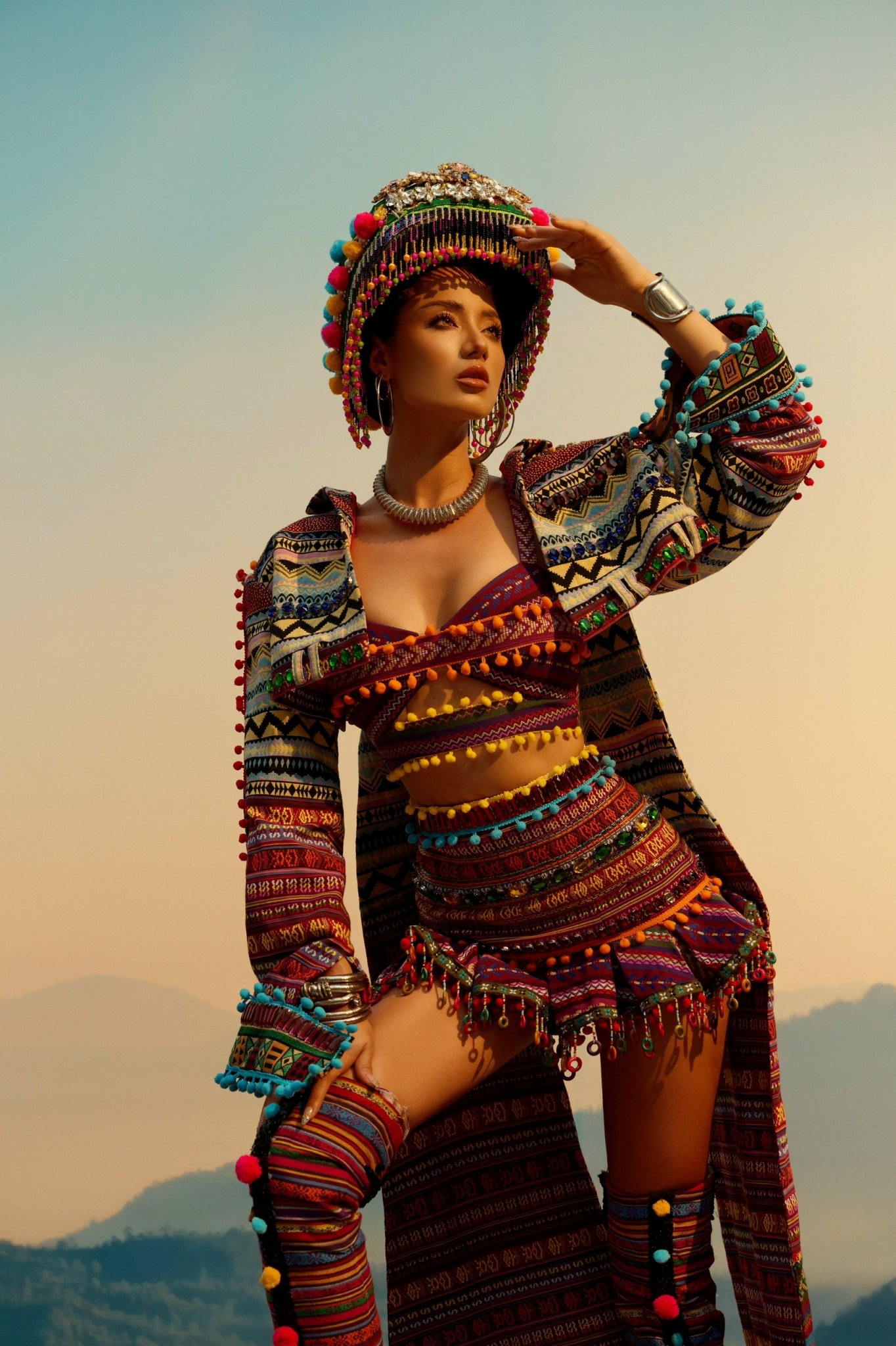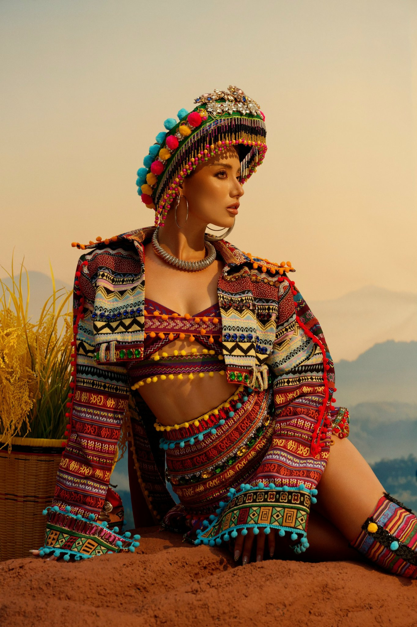 Thông qua trang phục này, người đẹp muốn quảng bá đến bạn bè quốc tế không chỉ những đặc trưng về đời sống văn hoá của người dân Tây Bắc mà còn là truyền thống yêu nước, đấu tranh giữ gìn bờ cõi non sông. Bởi từ xưa, Tây Bắc đã là 'cái nôi' của cách mạng, là nơi ông cha ta nhiều đời chiến đấu bảo vệ quê hương.