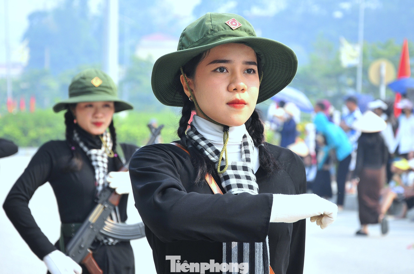 | Sau khi cơ động lên Điện Biên cùng các lực lượng khác tiếp tục luyện tập, khối nữ Du kích miền Nam luôn được người dân Điện Biên háo hức quan tâm. |