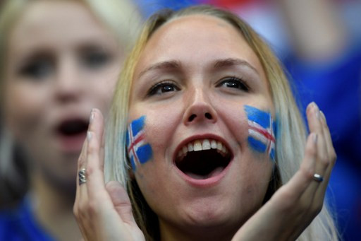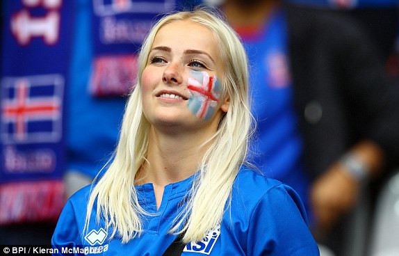 Nữ cổ động viên Iceland.