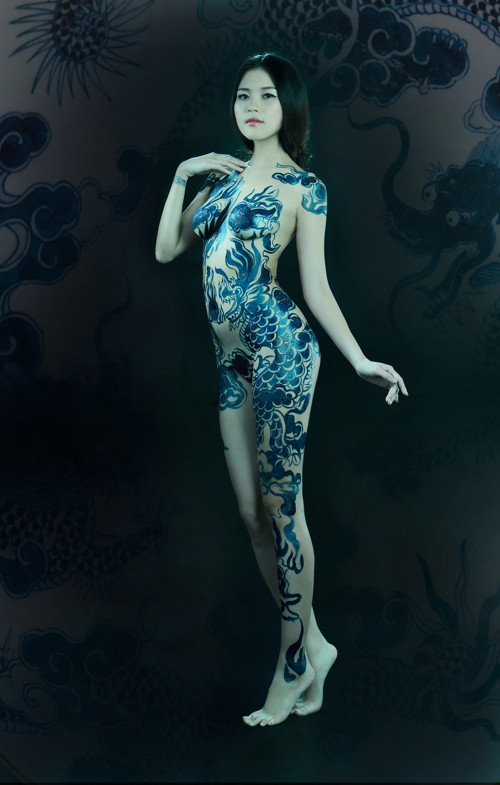 Sở hữu chiều cao 1m70 cùng số đo 3 vòng chuẩn 90 - 63 - 93, người mẫu Lâm Quế Minh không ngần ngại nude để họa sĩ Ngô Lực vẽ lên cơ thể cô những họa tiết gốm sứ.