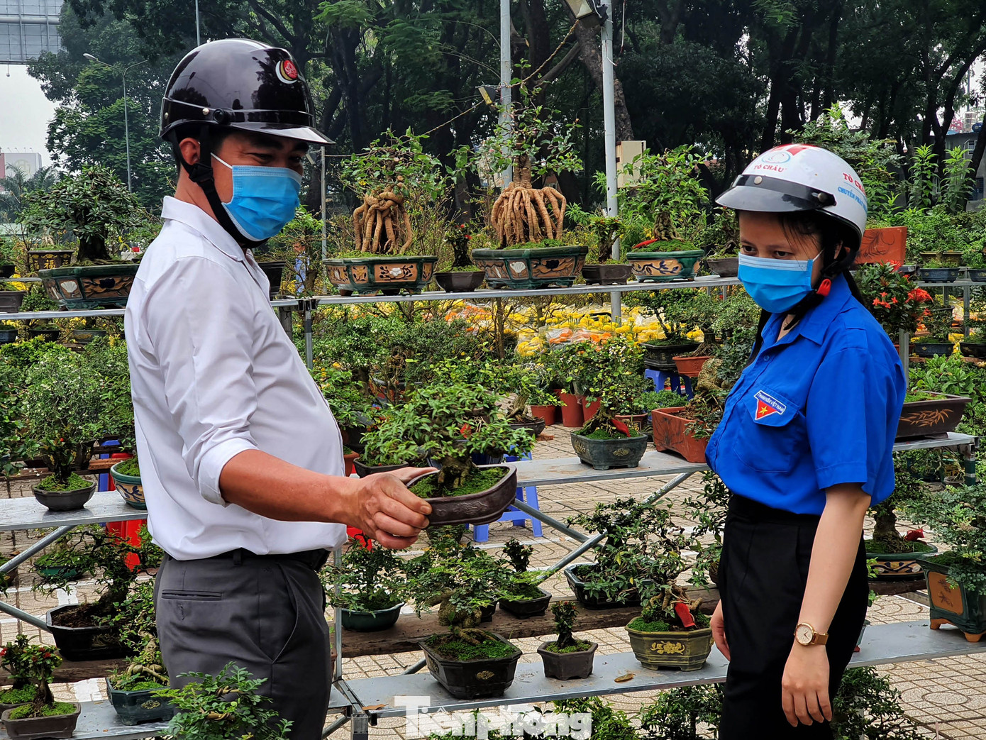 Chợ hoa xuân là nơi để những người có sở thích chơi bonsai mini tìm đến để sưu tập những cây cảnh đẹp về nhà chơi Tết.