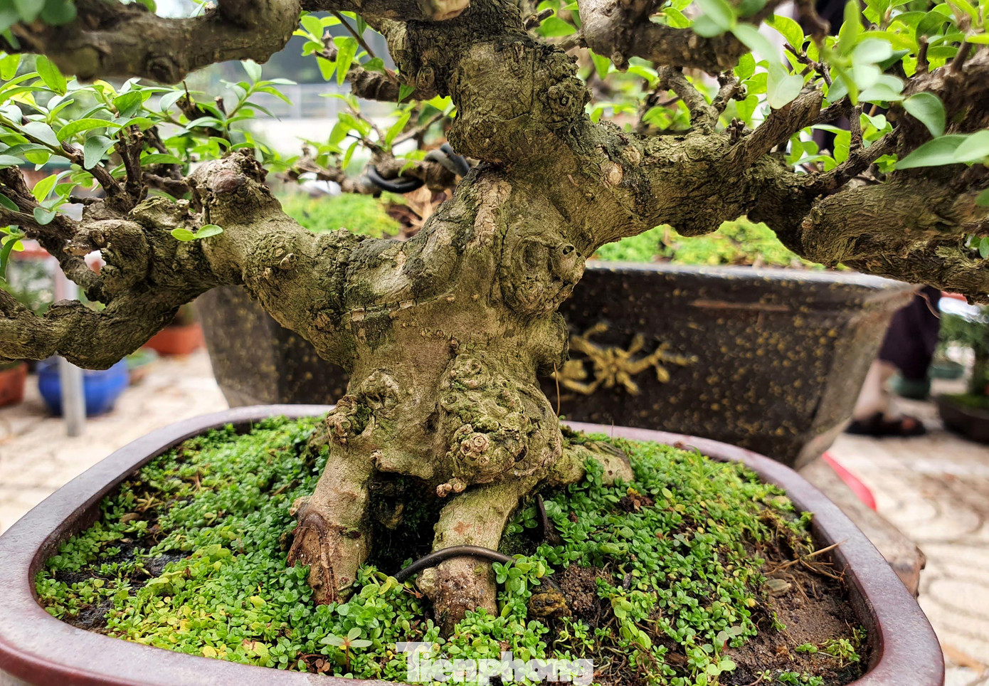 Theo chủ vườn thì dù là cây mini nhưng đã có tuổi đời rất lâu, gốc cây xù xì, các nhánh được tạo thế độc đáo nên có giá cao hơn những cây lớn khác.