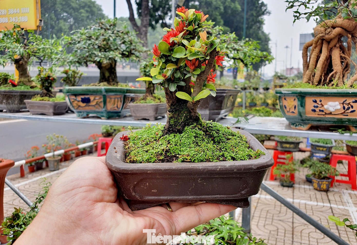 Chậu bonsai để vừa trong lòng bàn tay nhưng có giá gần 1 triệu đồng được bán ở chợ hoa xuân.