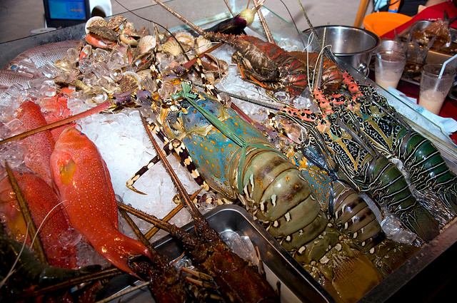 Khi màn đêm buông xuống, những nhà hàng, quán ăn bắt đầu trở nên bận rộn hơn bao giờ hết. Những sạp cá, tôm tươi rói luôn chào mời những du khách sành ăn. Một gợi ý bổ ích cho du khách là hãy chọn hải sản và nhờ đầu bếp chế biến nướng, hấp, xào… tùy ý, theo phong cách đặc trưng Dampa của người Philippines. Đồ hải sản ở đây cứ cân lên bán theo lạng, mực có giá trung bình 150 PHP, tôm là 180 PHP, tôm hùm với giá 280 PHP.