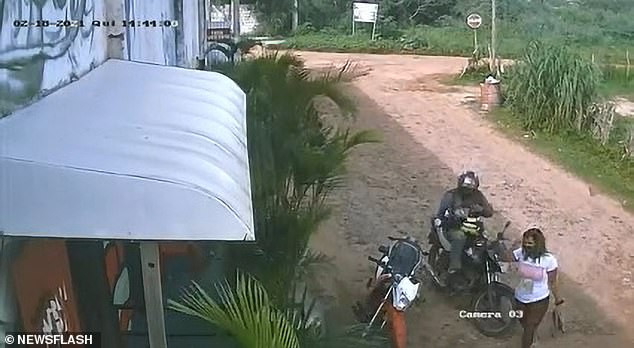 Đoạn video cho thấy người vợ có tên Dayane Rafaella de Silva Rodrigues (31 tuổi) đi xe máy đến một quán bar ở Tiangua (Brazil) hôm thứ Năm tuần trước, trên tay cầm một chiếc túi xách màu kem.
