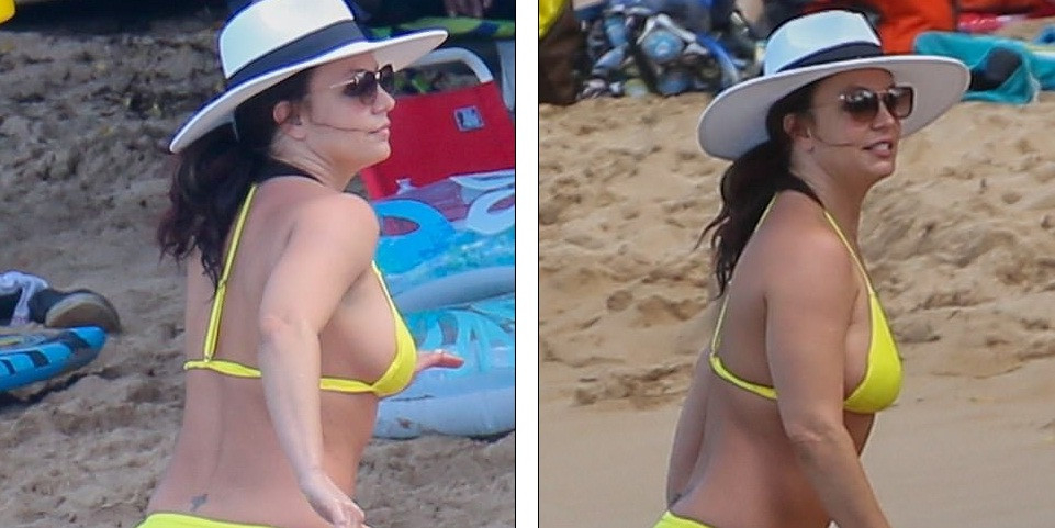 Britney Spears béo ú, xồ xề khi diện bikini màu chóe tung tăng ở Hawaii
