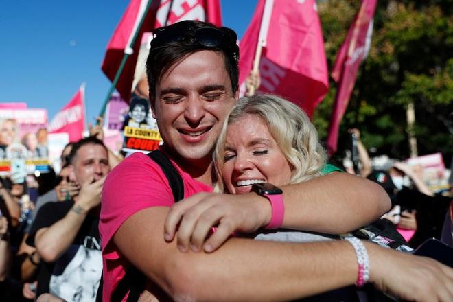 | Nhiều fan đã có mặt bên ngoài nơi diễn ra phiên tòa, ngay khi tuyên bố quan trọng được đưa ra, họ đã nhảy múa, hò reo vui mừng ở bên ngoài (Ảnh: New York Post). |