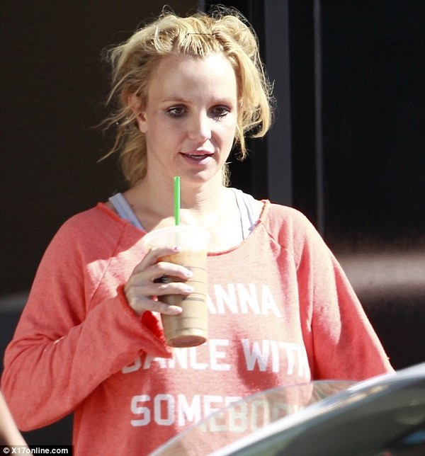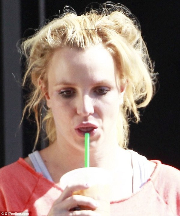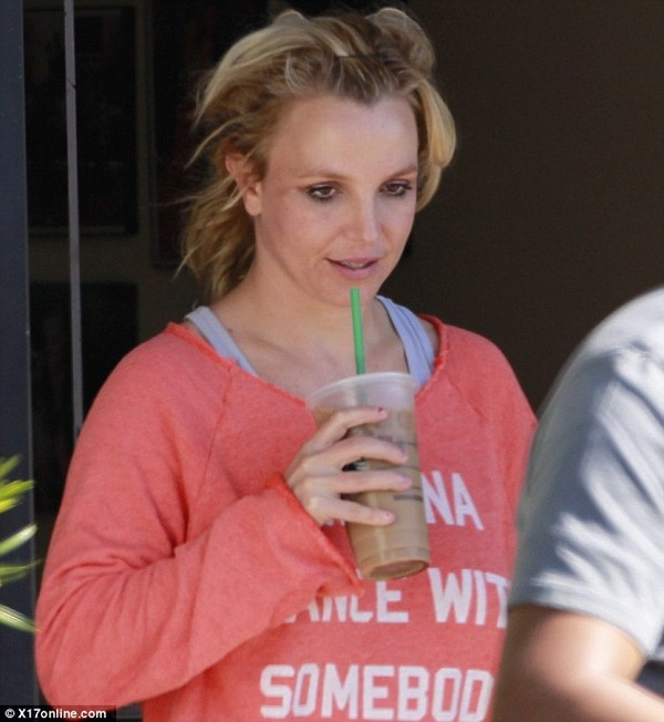 Britney mặc một chiếc áo rộng có vẻ luộm thuộm. Đầu tóc cô thì rối bù như không được chải. Trang DM thậm chí còn nhận định Britney chưa hề vào phòng tắm trong nhiều ngày qua.