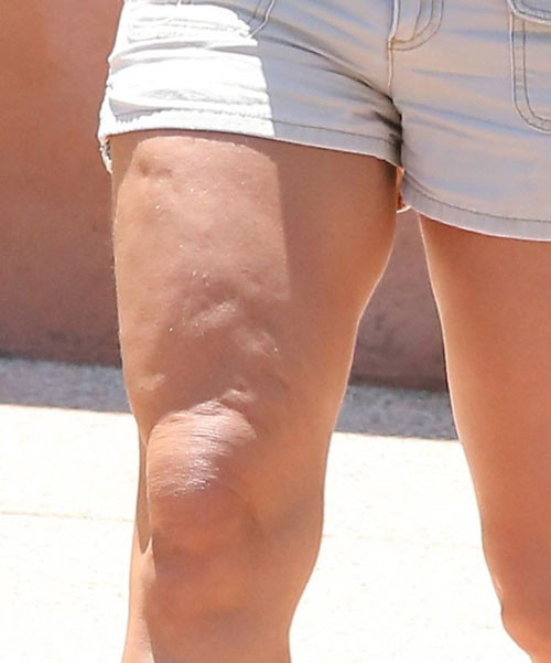 Cặp đùi của cô sần sùi vỏ cam và có bắp to thô kệch.