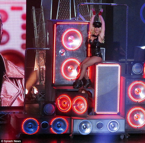 Britney Spears diện một bộ quần liền áo lóng lánh hết sức gợi cảm, biểu diễn hit Hold It Against Me cùng với vũ đoàn. Bà mẹ hai con biểu diễn rất sung và di chuyển liên tục quanh sân khấu để khuấy động khán giả.