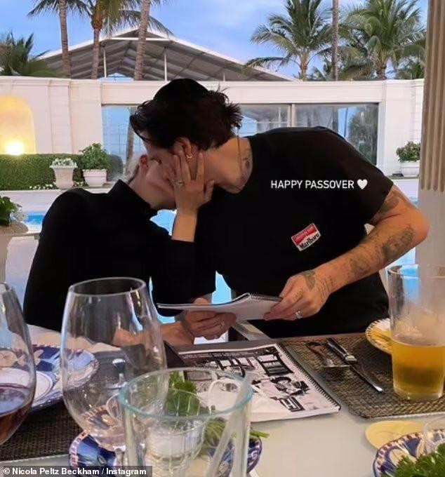 Trong một bức ảnh, người mẫu sinh năm 1995 và chồng trẻ, Brooklyn Peltz Beckham, hôn nhau say đắm bên bàn ăn nhân dịp kỷ niệm Lễ Vượt qua – ngày lễ quan trọng của người Do Thái kỷ niệm giải phóng khỏi chế độ nô lệ Ai Cập. Bức ảnh khác chụp cận mặt cậu cả nhà Beckham cởi trần, nở nụ cười rạng rỡ, kèm theo chú thích: “Cuộc sống hôn nhân”.