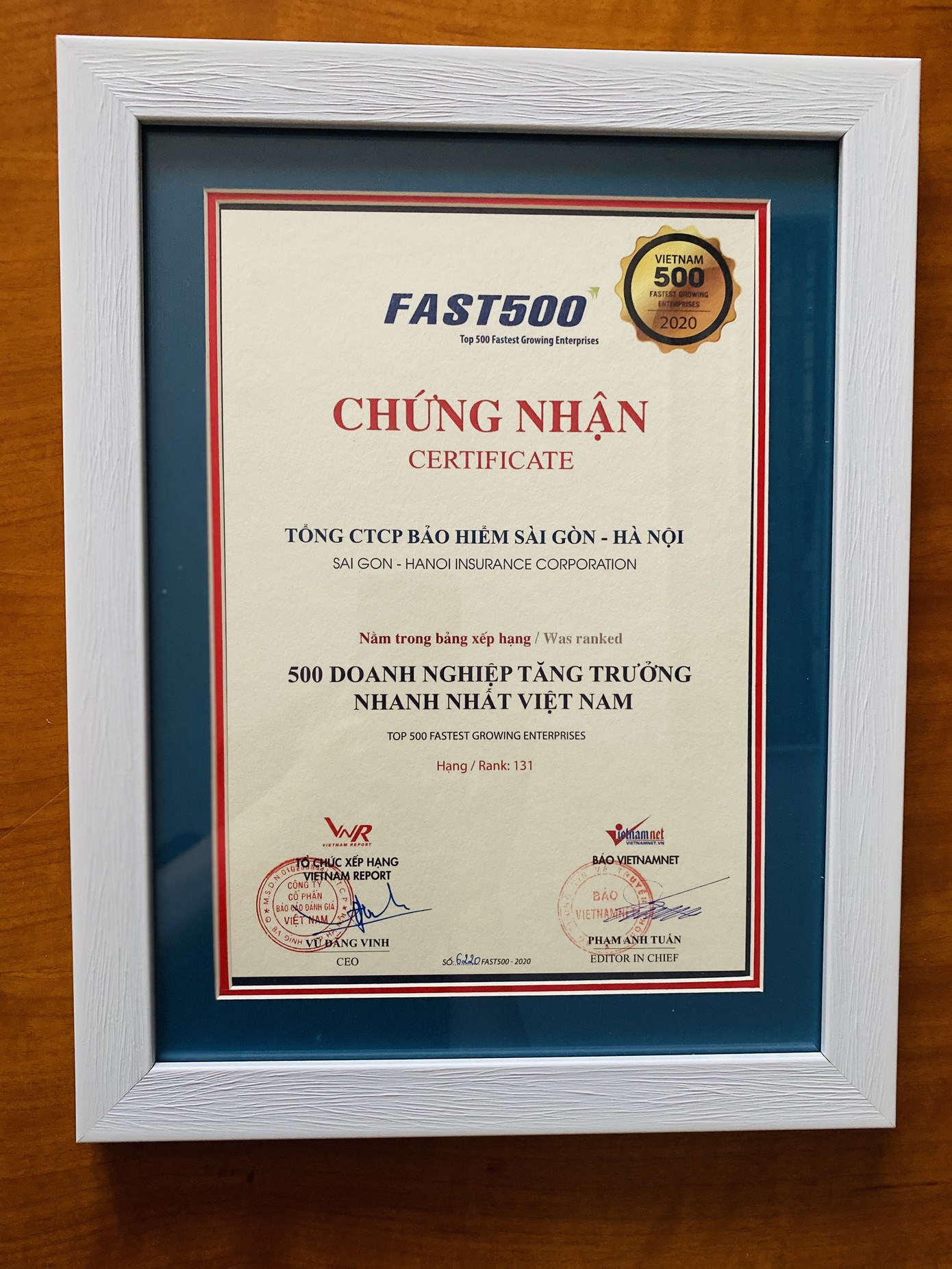 Năm 2020, Bảo hiểm BSH tự hào có mặt trong Top 50 Doanh nghiệp tăng trưởng xuất sắc nhất Việt Nam và Top 500 Doanh nghiệp tăng trưởng nhanh nhất Việt Nam năm 2020 (FAST500).
