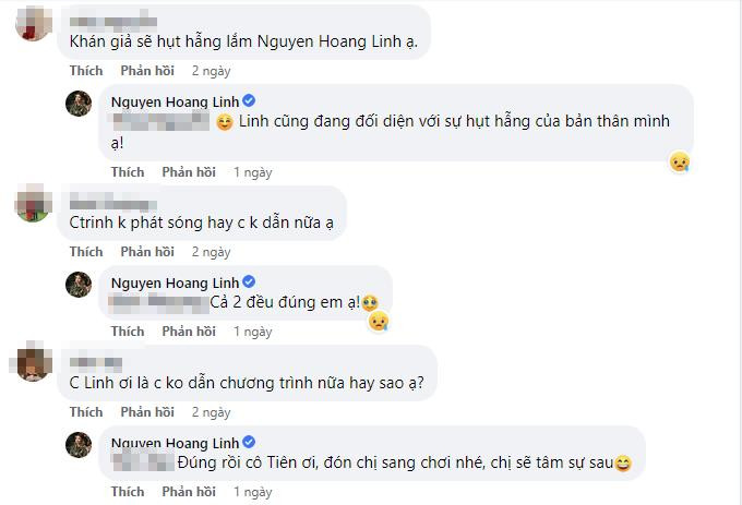 “Theo dõi chị từ ngày đầu chương trình Chúng tôi là chiến sĩ phát sóng. Dù chương trình không phát sóng nữa, nhưng em vẫn dõi theo chị và yêu chị như ngày đầu”; “Em chờ mãi mà không thấy chị và chương trình”; “Hạnh phúc lắm Linh ơi! Được đi nhiều nơi, được biết nhiều người, được mặc đủ các bộ quân phục... Đặc biệt là được hàng chục triệu khán giả trên cả nước yêu thích. Khó có người được như Linh, chúc Linh luôn luôn có thật nhiều sức khỏe, trẻ đẹp, đóng góp tài năng cho quê hương đất nước”; “Cô gái 15 năm đeo binh nhì lầm lì đã chia tay chương trình vui về quân đội rồi à? Chúc cháu ở cương vị mới vui vẻ hồn nhiên”; “Cảm ơn chị nhé. Chị cũng là một phần thanh xuân của em từ màu áo trắng đến màu áo lính”; “Buồn thế chị, chúc chị trên cương vị mới luôn mạnh khỏe, tràn đầy năng lượng và luôn cống hiến hết mình vì công việc nhé”; “Cuộc vui nào rồi cũng phải có hồi kết, chặng đường nào cũng phải có điểm dừng, nhưng yêu thương, kỷ niệm sẽ luôn luôn đầy ắp và chắc chắn sẽ không dừng lại. Chúng ta không được tiếp tục gặp nhau ở chương trình này thì sẽ gặp lại nhau ở chương trình khác, với những niềm vui mới và những kỷ niệm mới, em và các đồng chí đồng đội toàn quân sẽ luôn luôn nhớ hình ảnh của chị và ekip. Em xin thay mặt các đồng chí, đồng đội toàn quân xin hứa với chị và mọi người, cho dù thế nào thì chúng em vẫn sẽ luôn luôn vui vẻ, phát huy tinh thần đoàn kết, tiếp tục học tập, huấn luyện, tôi rèn bản thân, phát triển khả năng chiến đấu, không sợ gian khó, hy sinh để bảo vệ tổ quốc, bảo vệ nhân dân ạ”… là một số bình luận bên dưới dòng trạng thái của BTV Hoàng Linh.