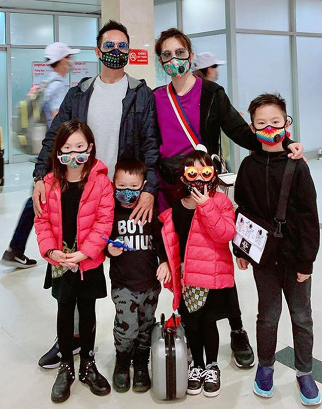 Gia đình Lý Hải - Minh Hà cũng chủ động đeo khẩu trang để phòng tránh dịch virus corona khi ra sân bay.