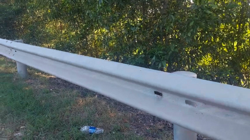 | Bu lông, ốc vít, giá đỡ tường hộ lan mềm trên Quốc lộ 19 bị tháo trộm. Clip: Trương Định |