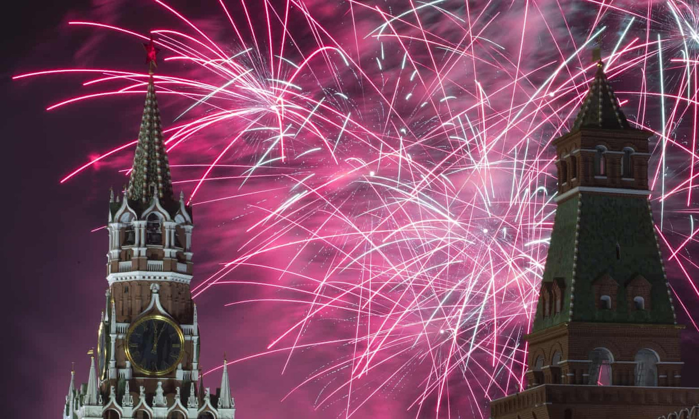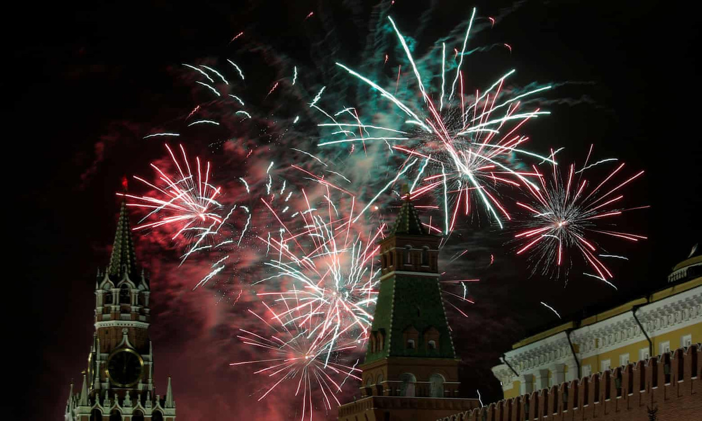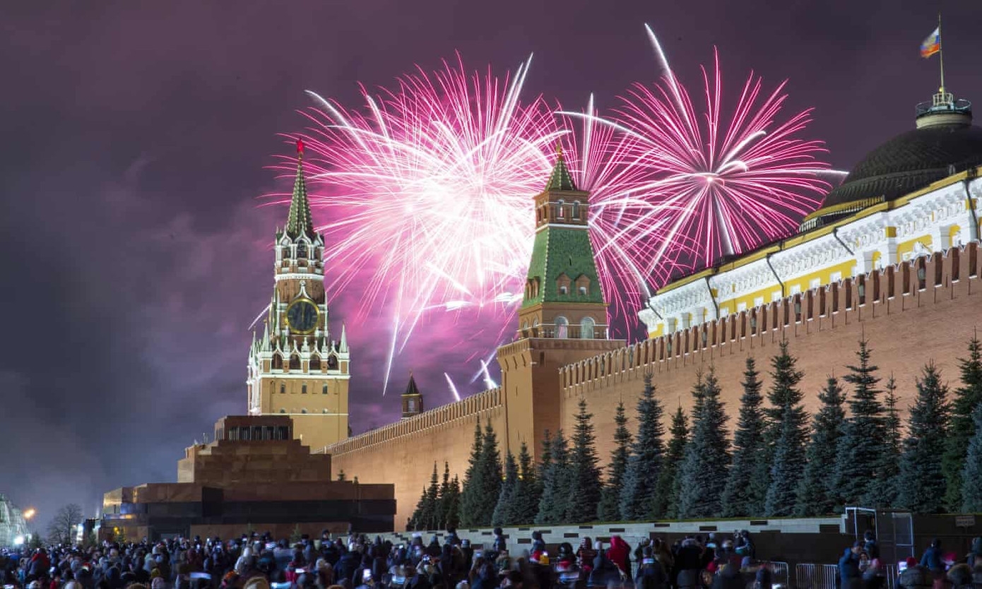 Lúc 4h sáng 1/1 (giờ Việt Nam), nước Nga chính thức đón năm mới 2020 bằng màn pháo hoa rực sáng Quảng trường Đỏ (Moscow). Ảnh: AP